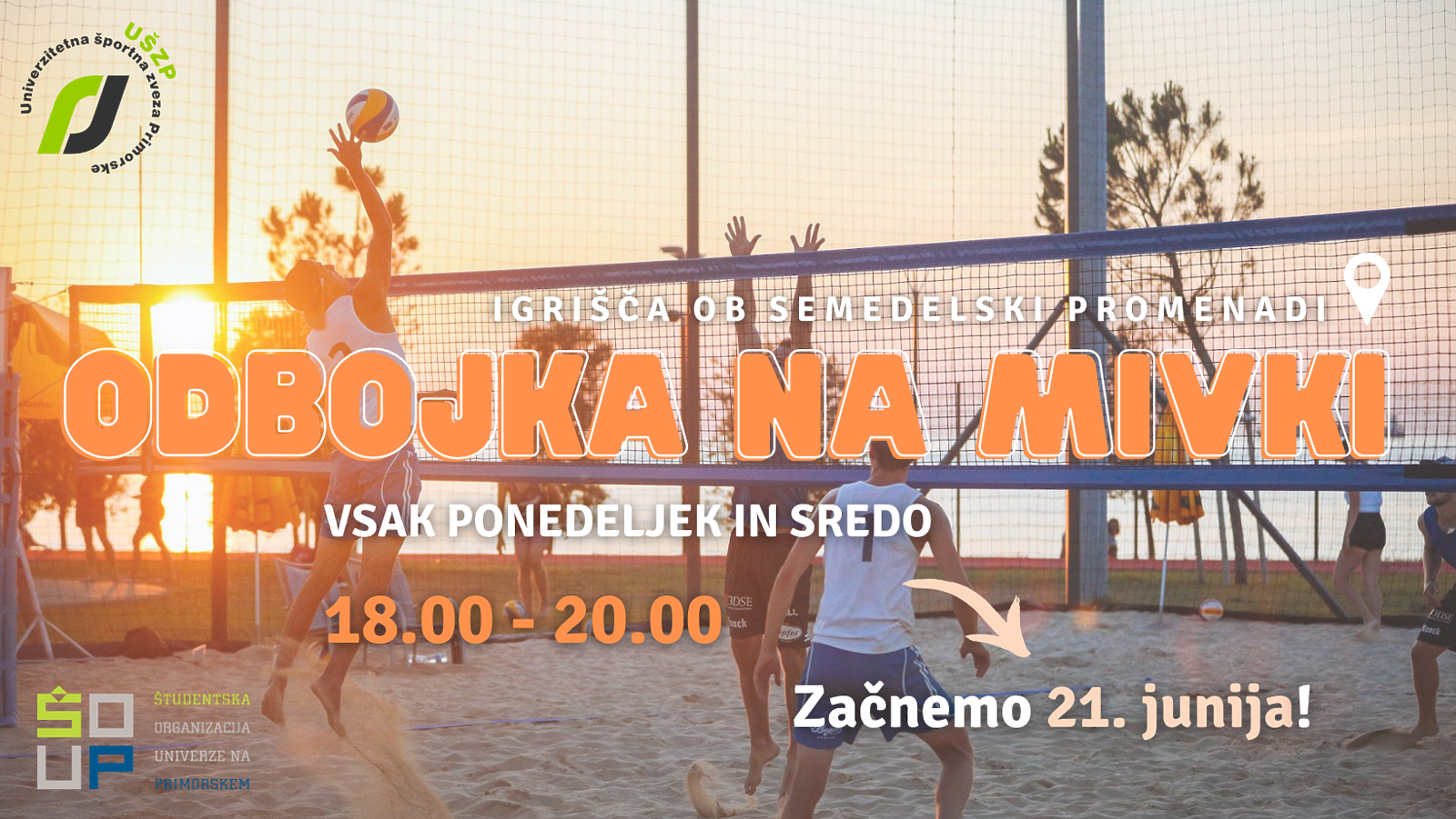 Študentska organizacija Univerze na Primorskem in Univerzitetna športna zveza Primorske vsem študentom Univerze na Primorskem in Fakultete za pomorstvo in promet Univerze v Ljubljani od junija dalje omogočata brezplačno rekreacijo v Centru športov na mivki ob semedelski promenadi.