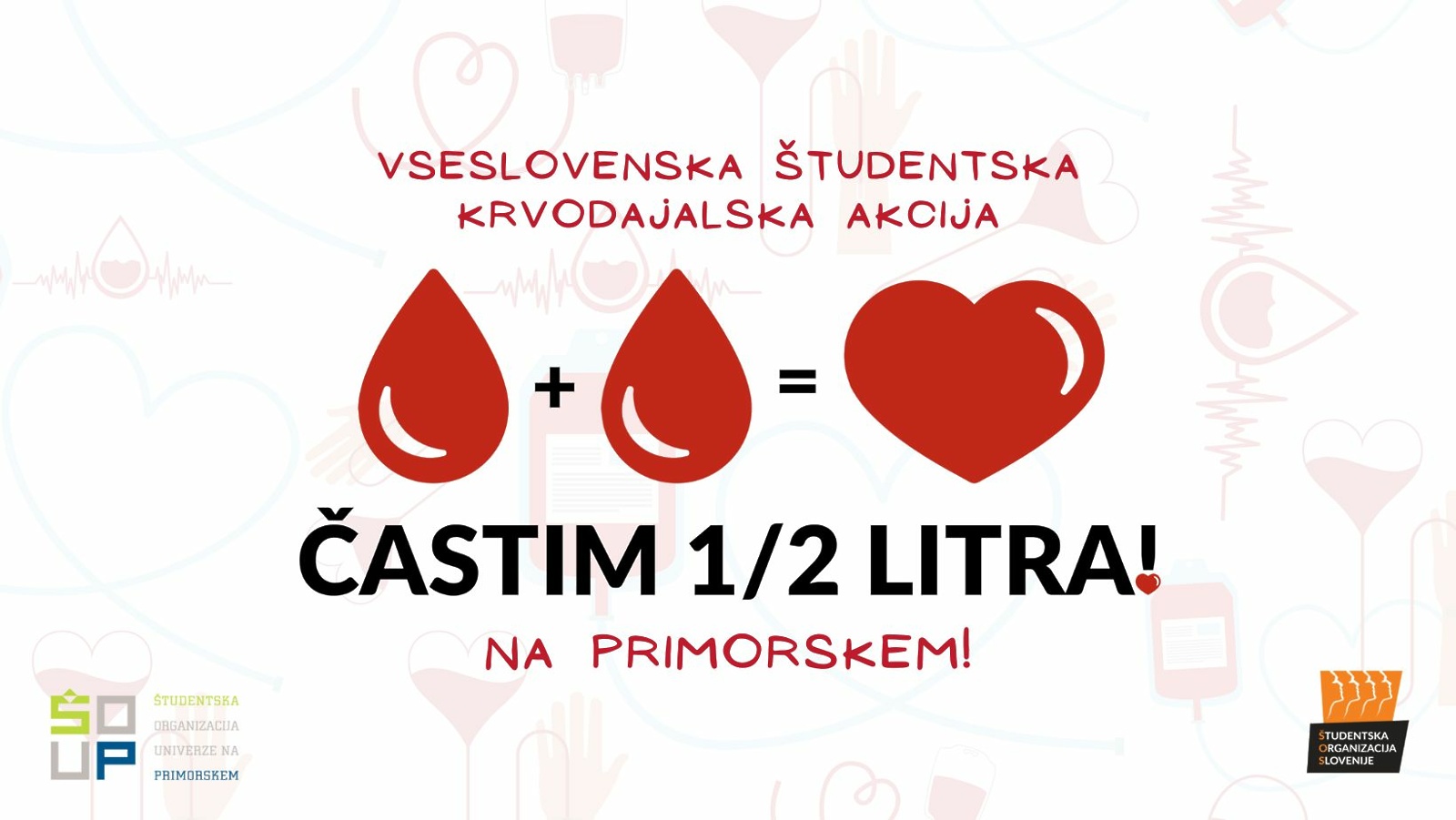 Študentska organizacija Univerze na Primorskem (ŠOUP) v okviru vseslovenske študentske krvodajalske akcije pod sloganom »Častim 1/2 litra!« vabi vse na krvodajalsko akcijo na Primorskem.