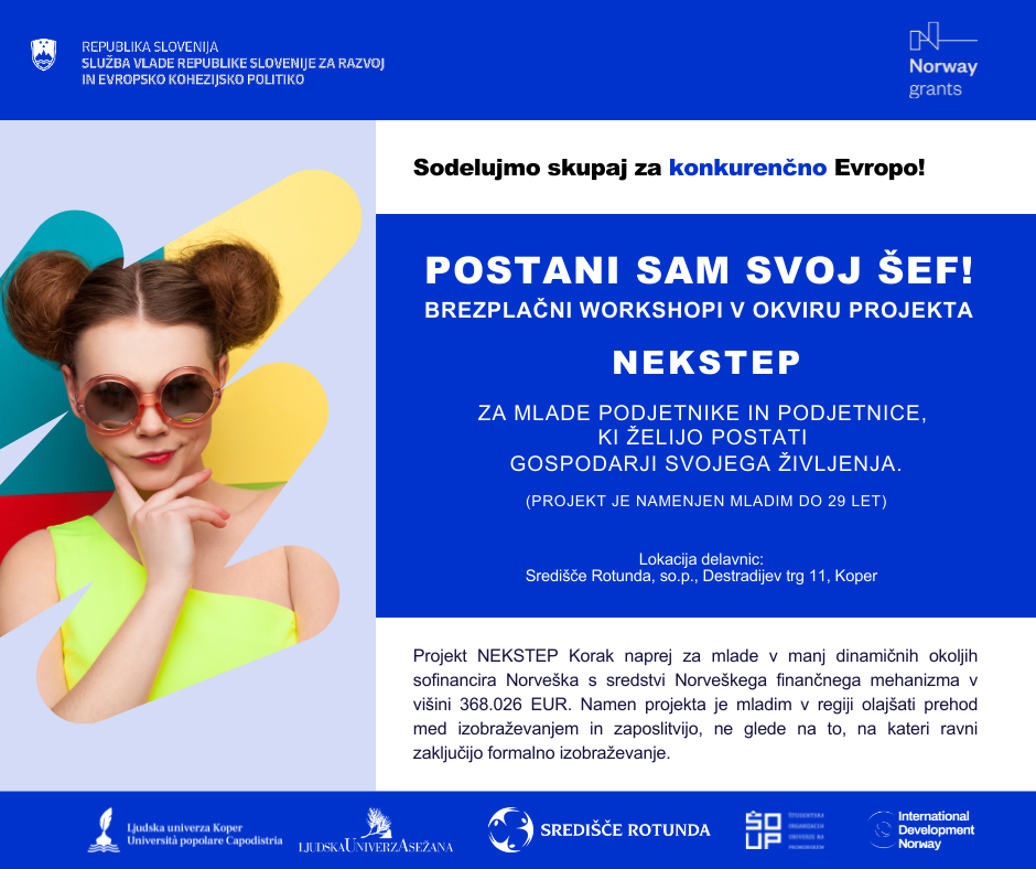 V okviru projekta NEKSTEP Korak naprej za mlade v manj dinamičnih okoljih Središče Rotunda razpisuje prvo delavnico za mlade do 29 let, z naslovom Moja strast - moj biznis!