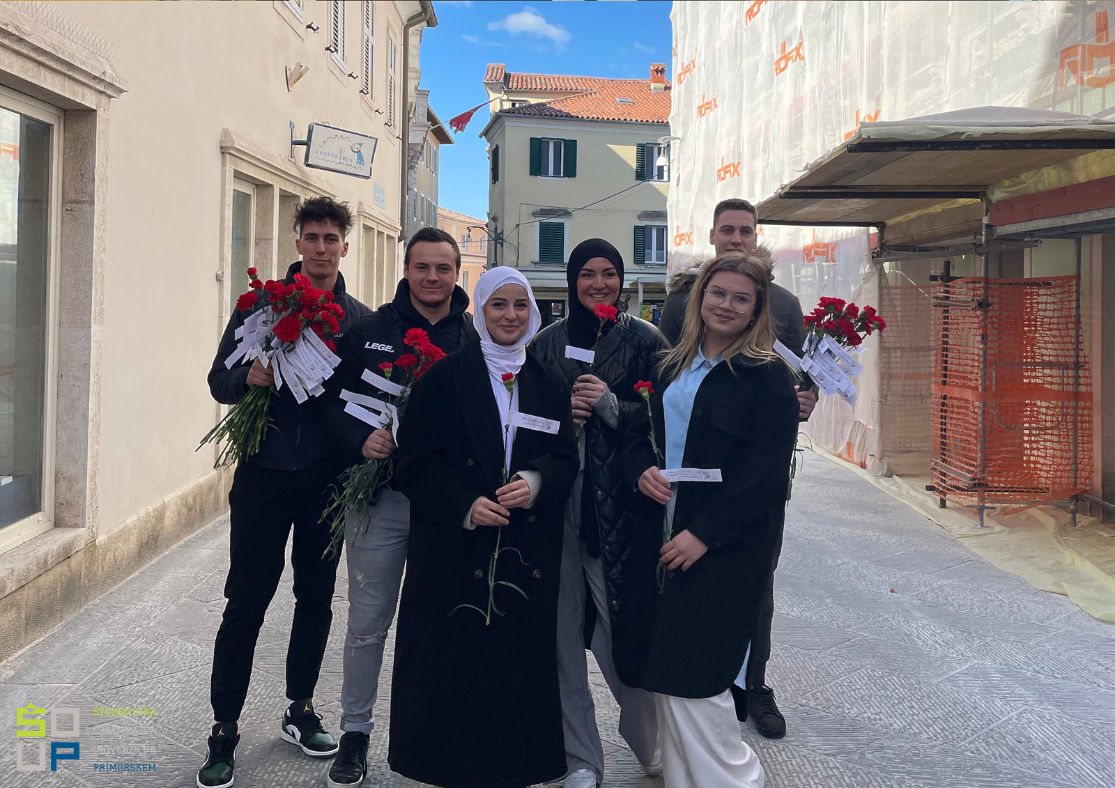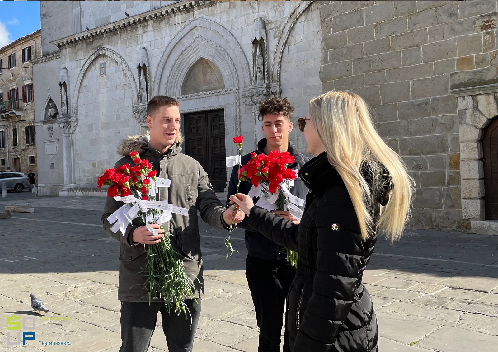 Na Študentski organizaciji Univerze na Primorskem (ŠOUP) smo na današnji dan, 8. marca 2022, delili rdeče nageljne, s katerimi smo obeležili Mednarodni dan žensk in polepšali dopoldan študentkam Univerze na Primorskem.