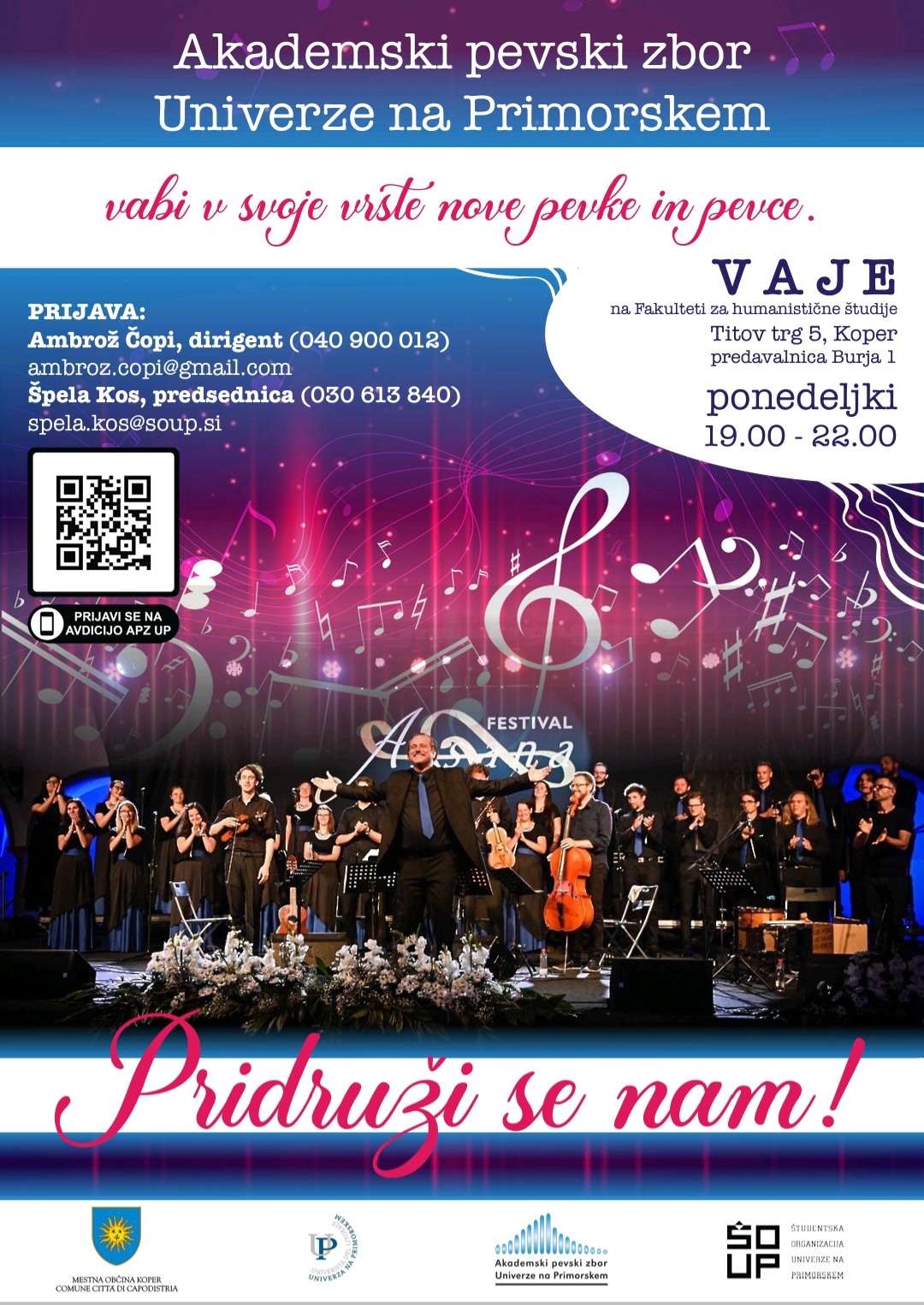 Vabimo vas, da se nam pridružite in tudi vi postanete del Akademskega pevskega zbora Univerze na Primorskem.