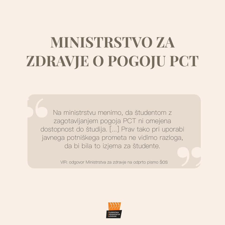 Radi bi znova poudarili, da smo na ŠOS pozivali k cepljenju in smo s porastom precepljenosti med študentsko populacijo izredno zadovoljni, a vseeno nikakor ne bomo dopustili, da se študentom, ki se testirajo, omejuje dostop do izobraževanja.