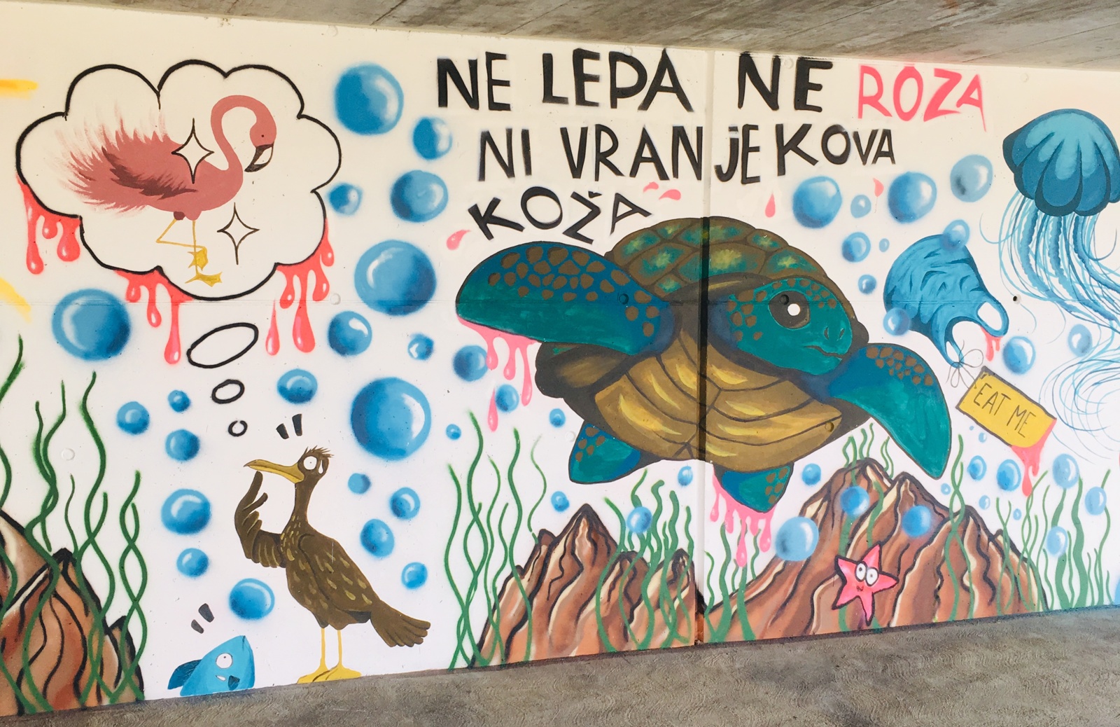 Aida je ob zaključku bolj morske tematike pri svojem grafitu opozorila predvsem na dejstvo o pomanjkanju samoniklih prizorišč, kjer bi lahko mladi v popolnoma neodvisnem in avtonomnem okolju svobodno ustvarjali, se izobraževali, kulturno udejstvovali, se družili in učili socialnih veščin.