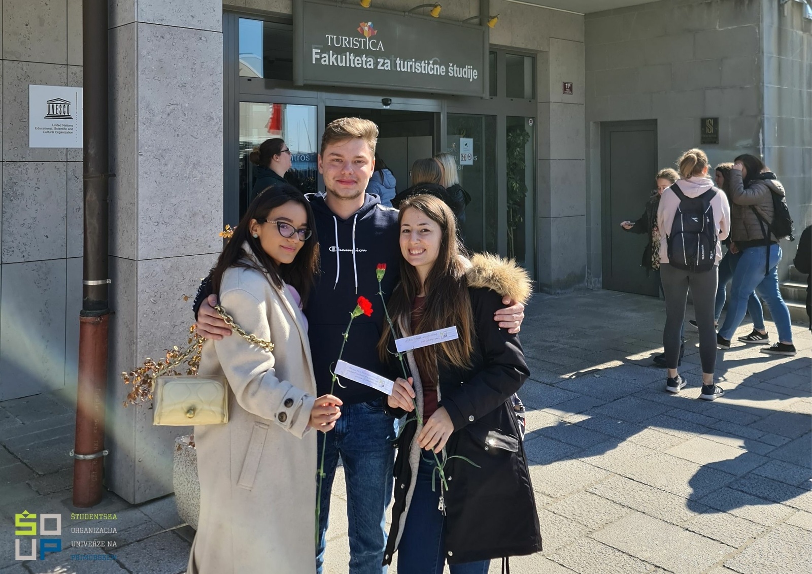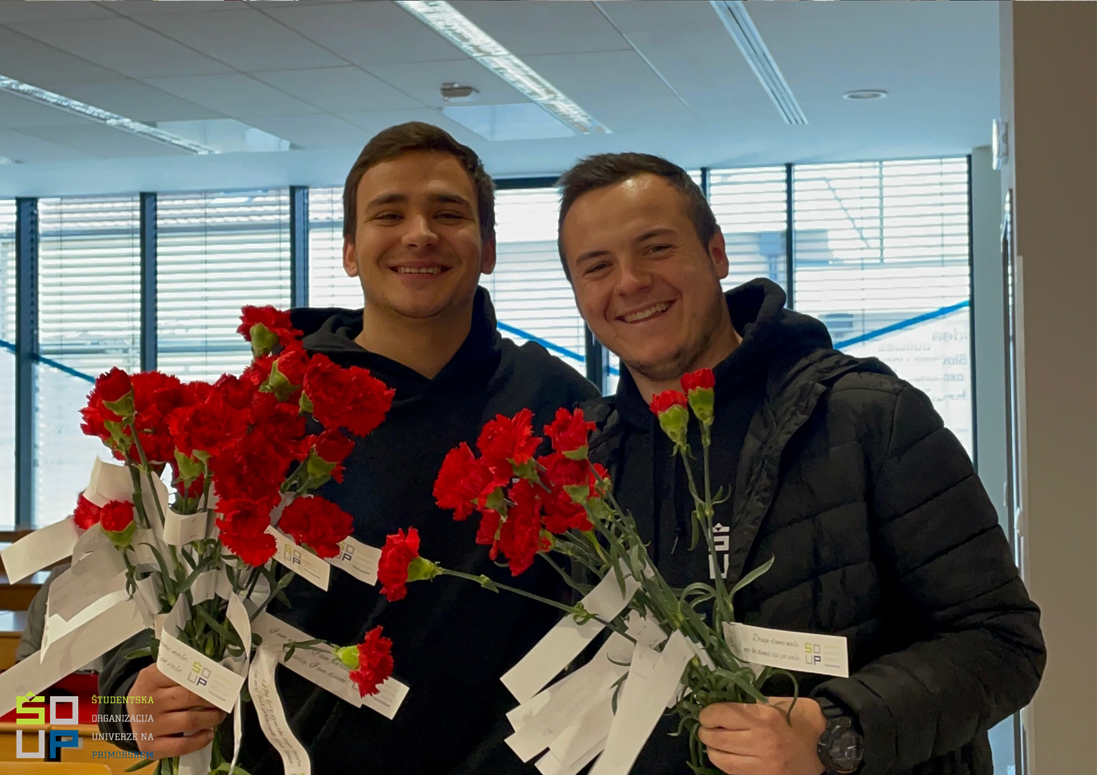 Na Študentski organizaciji Univerze na Primorskem (ŠOUP) smo na današnji dan, 8. marca 2022, delili rdeče nageljne, s katerimi smo obeležili Mednarodni dan žensk in polepšali dopoldan študentkam Univerze na Primorskem.