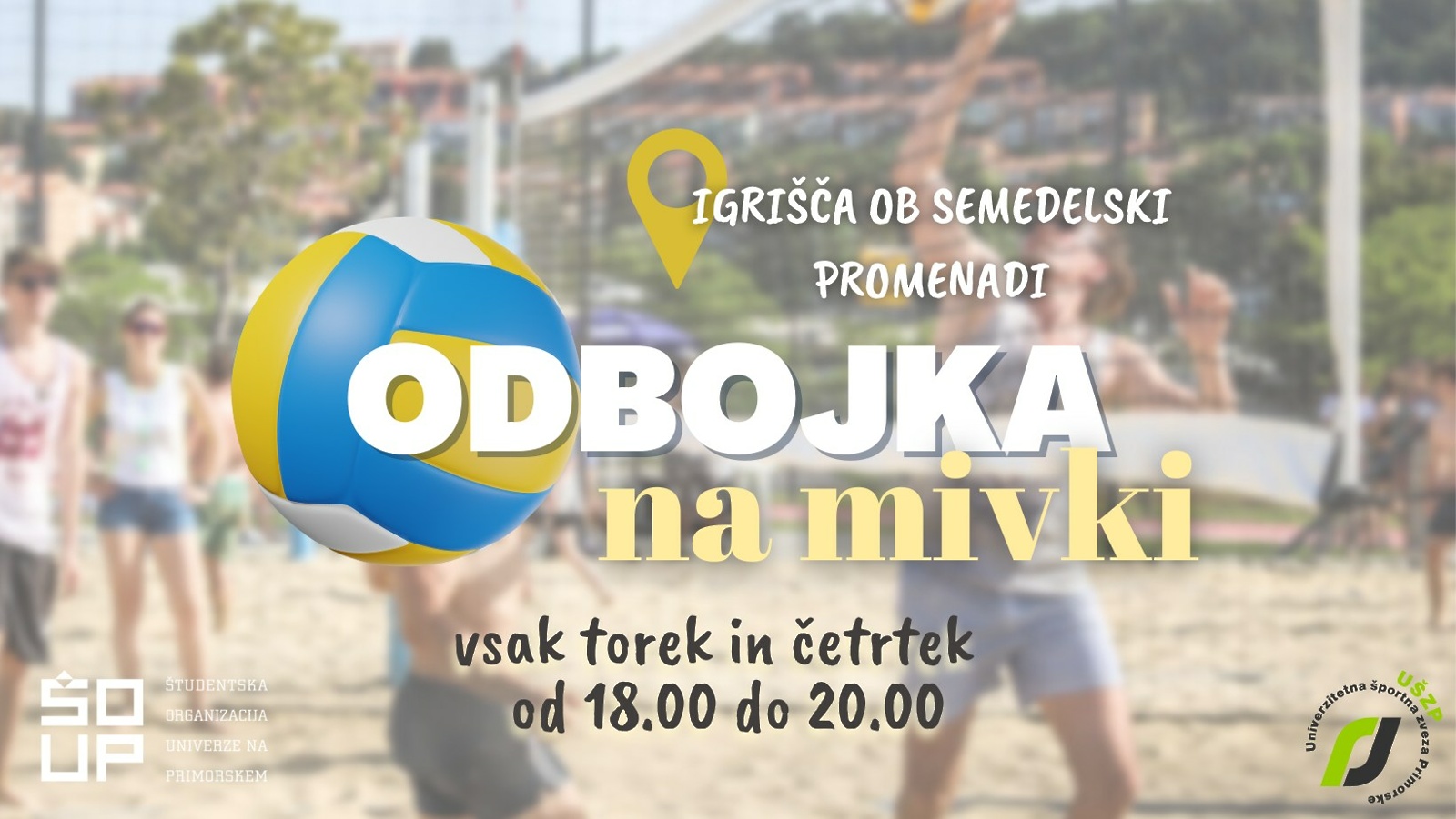 Študentska organizacija Univerze na Primorskem in Univerzitetna športna zveza Primorske vsem študentom Univerze na Primorskem od 9. junija dalje omogočata brezplačno rekreacijo v Centru športov na mivki ob semedelski promenadi.