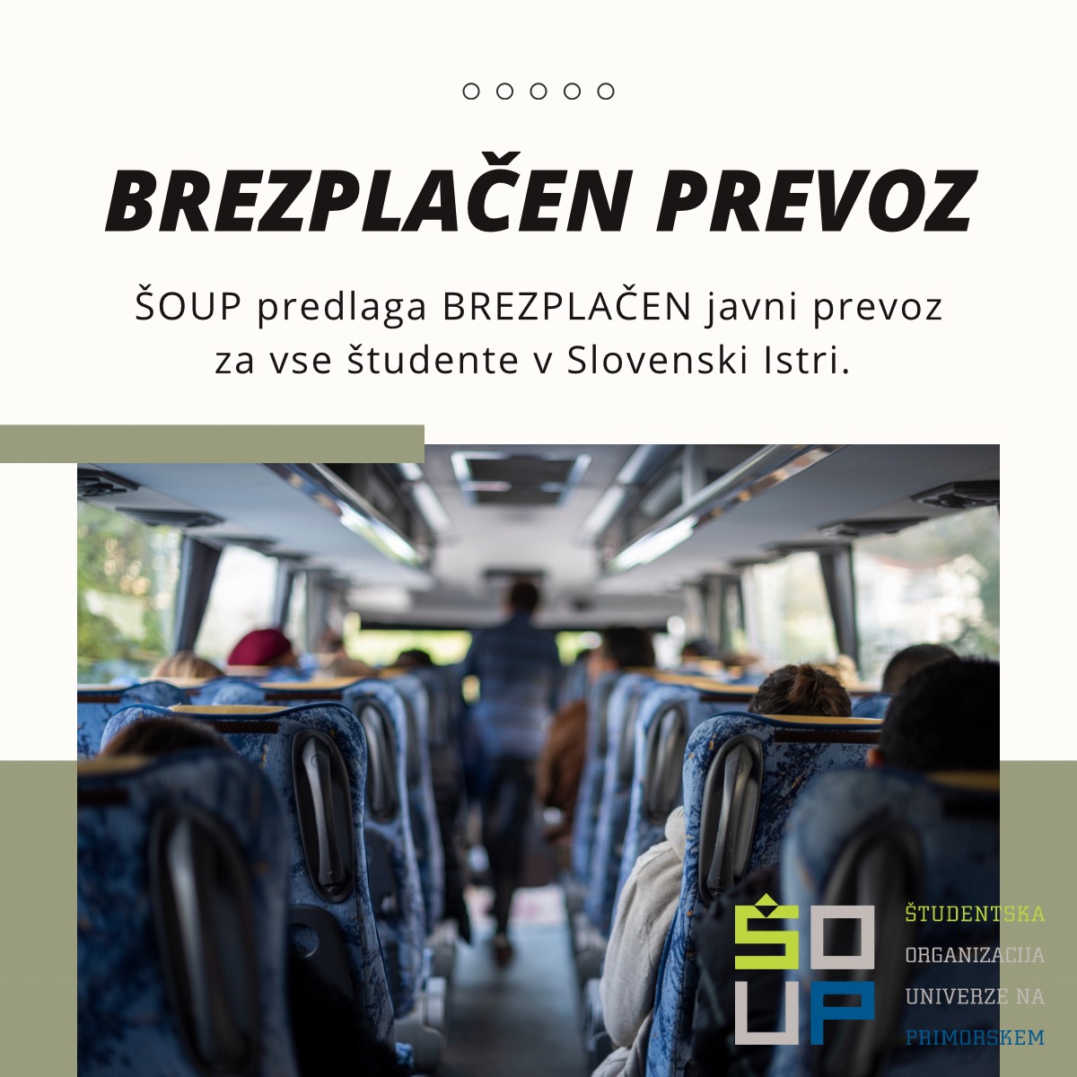 Na Študentski organizaciji Univerze na Primorskem (ŠOUP) smo pripravili pobudo, ki bi omogočila brezplačen javni prevoz študentkam in študentom v Slovenski Istri.