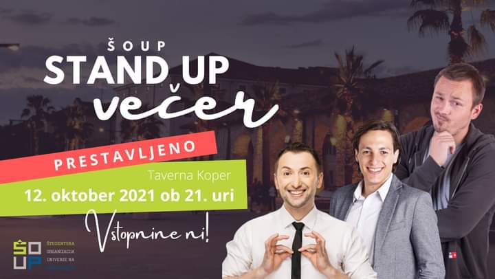 ŠOUP vabi študente UP in FPP na stand up večer s Perico Jerkovićem, Markom Žerjalom in Žanom Papičem. Vstopnine ni!