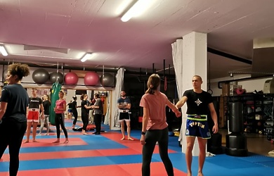 Delavnico je vodil glavni trener in ustanovitelj kluba Vlado. Uvod je bil namenjen osnovam kickboxa, ki je dinamična borilna veščina. Njene tehnike so uporabne tudi za samozaščito ter imobilizacijo napadalcev. Sledili so prikazi določenih prijemov, udarcev in tehnik, ki so jih udeleženke izvajale s pomočjo članov Kickboxing Kluba Koper. Ti so jih vodili skozi položaje ter jim pomagali pri pravilni izvedbi. Vse prisotne so bile ob zaključku delavnice vidno zadovoljne. Sicer upamo, da ne bodo nikoli prisiljene uporabiti novega znanja v vsakdanjem življenju, a trening telesa in uma vsekakor pozitivno vpliva na zdravje ter občutek varnosti.