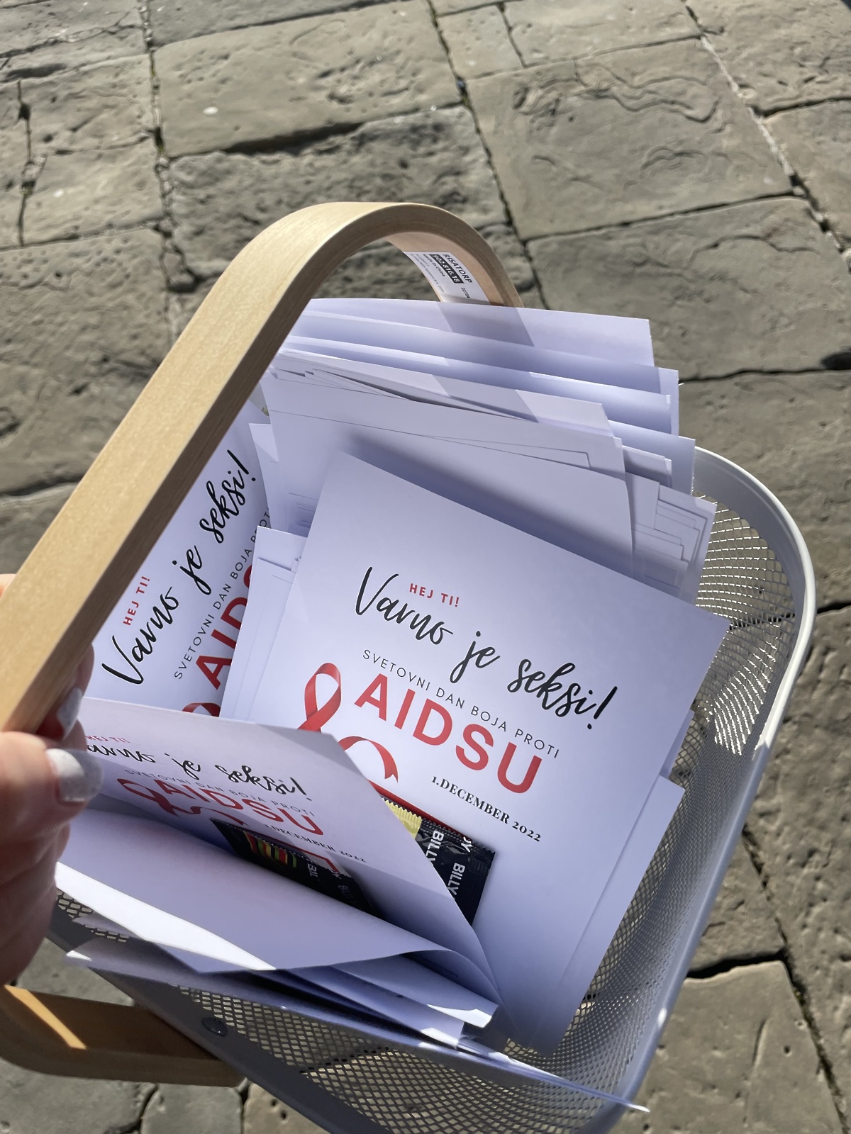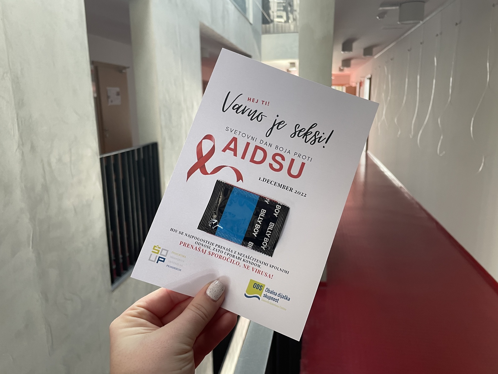 V okviru svetovnega dneva boja proti AIDS-u smo danes, 1. decembra 2022, na fakultetah Univerze na Primorskem in obalnih srednjih šolah delili kondome ter osveščali o testiranju na HIV.