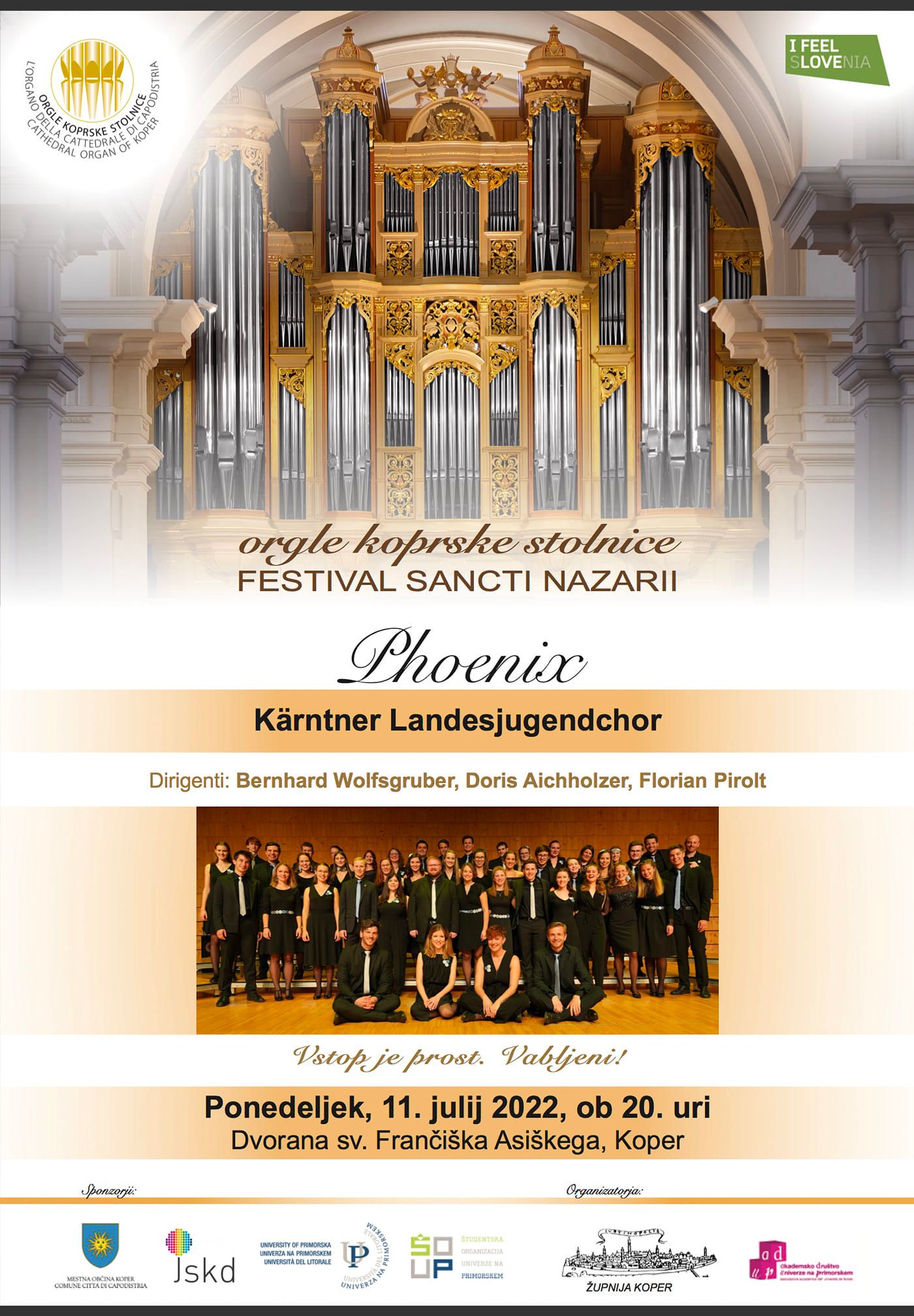 V dvorani sv. Frančiška Asiškega v Kopru se bo občinstvu predstavil s projektom Phoenix Kärntner Landesjugendchor (Koroški mladinski zbor) pod vodstvom dirigentov Bernharda Wolfsgrubra, Doris Aichholzer in Floriana Pirolta. Zbor sodi med najvidnejše zborovske sestave v Avstriji. V novem projektu je združil izjemne mlade pevce iz avstrijske Koroške.